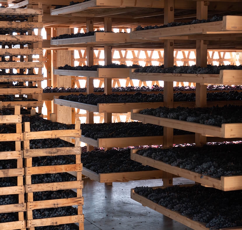 Raccogliamo le nostre uve durante il periodo di vendemmia rigorosamente a mano, selezionando accuratamente ogni singolo grappolo, cominciando dalle uve destinate all’appassimento fino alla raccolta dell’uva destinata alla pigiatura immediata.