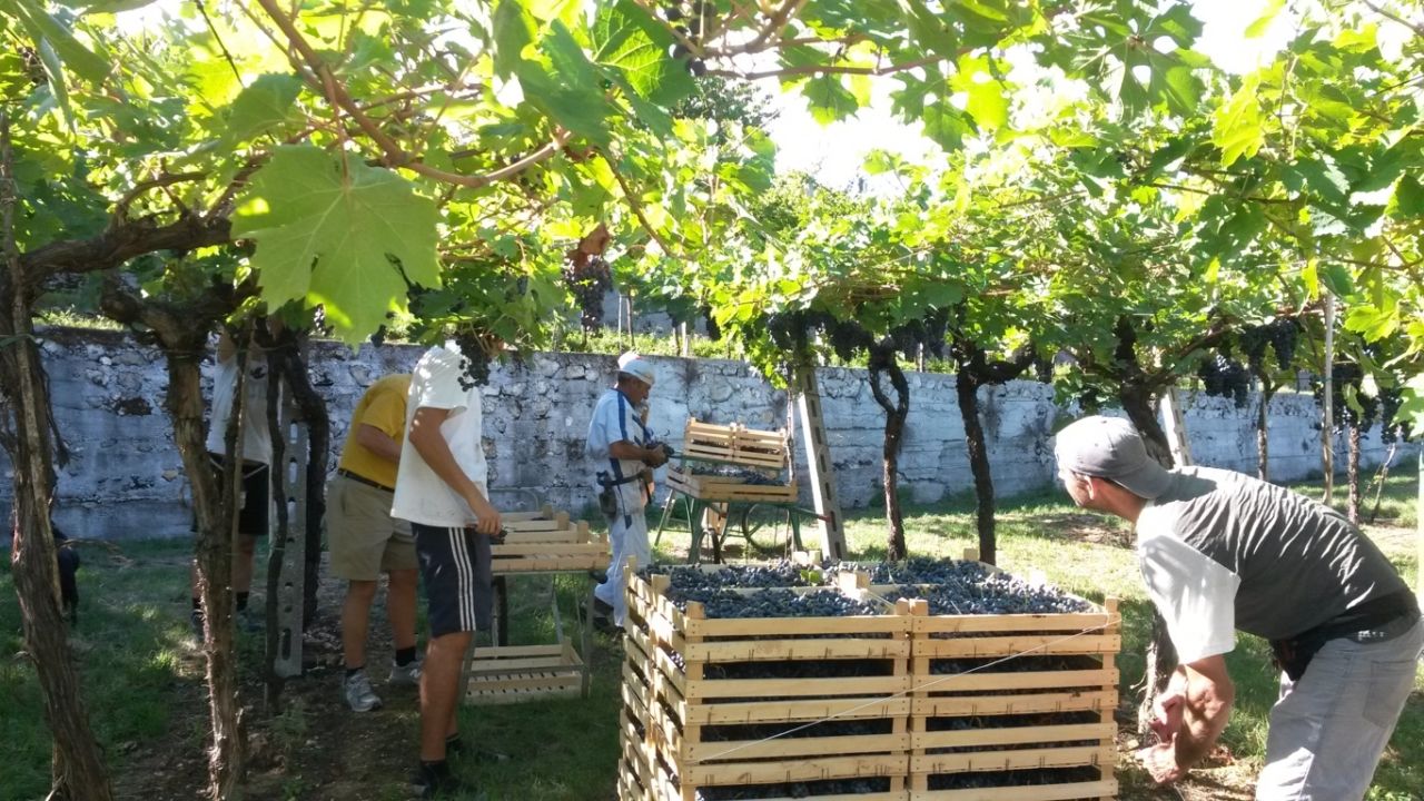 I vigneti sono monitorati in ogni loro fase. Se necessario si interviene anche con opere di diradamento dei grappoli per assicurarne la qualità . Il sistema di allevamento è la pergola. La vendemmia è eseguita completamente a mano dai componenti della famiglia.