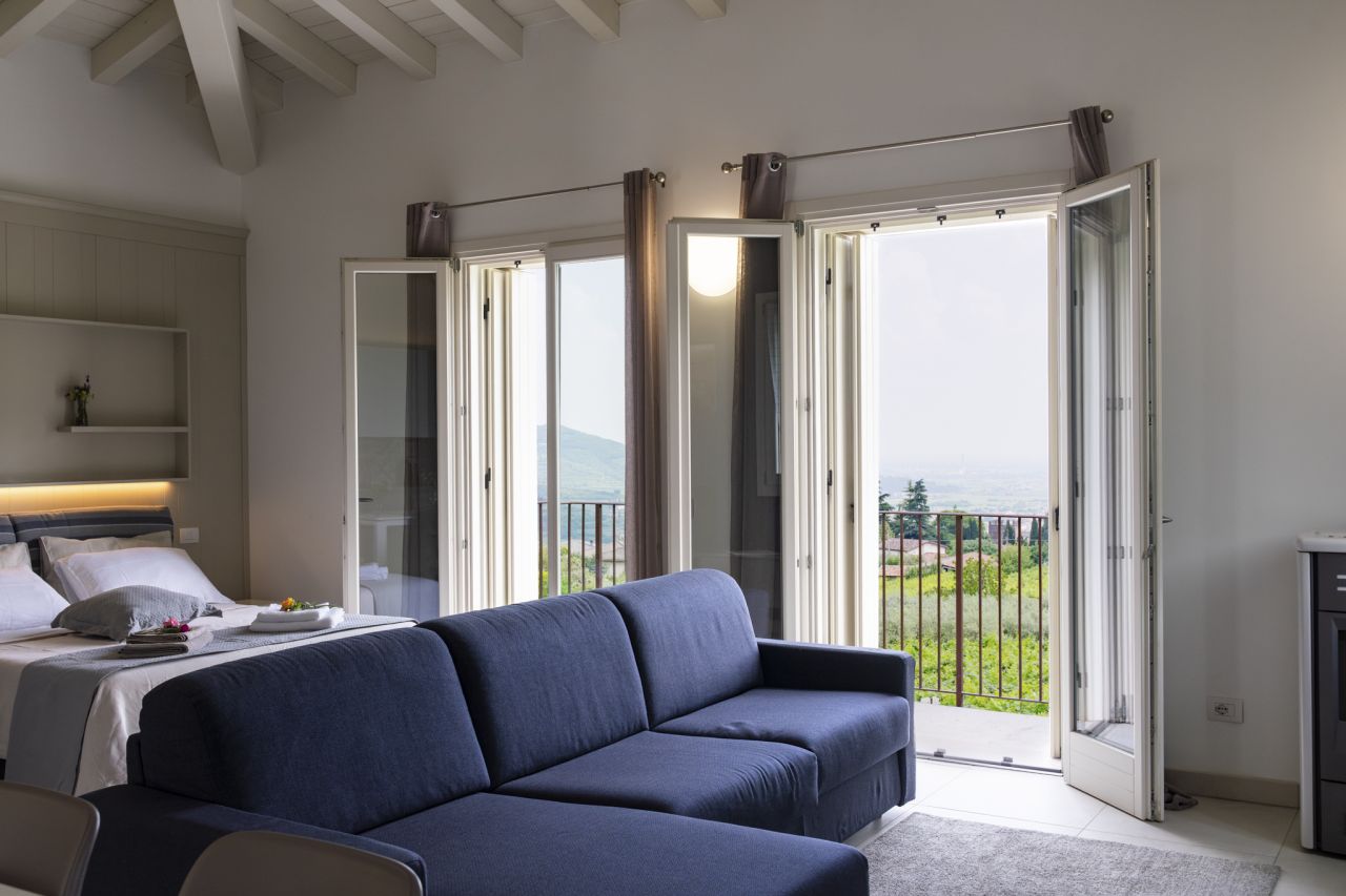 L'appartamento si trova all'interno dell'azienda agricola di famiglia dove si produce il vino Valpolicella. In mezzo ettaro di vigna vengono coltivati tre qualità di uva: Corvina, Rondinella e molinara. Dal 2022 i proprietari hanno iniziato a vinificare; il primo vino, il Valpolicellla, è certificato SQNPI.