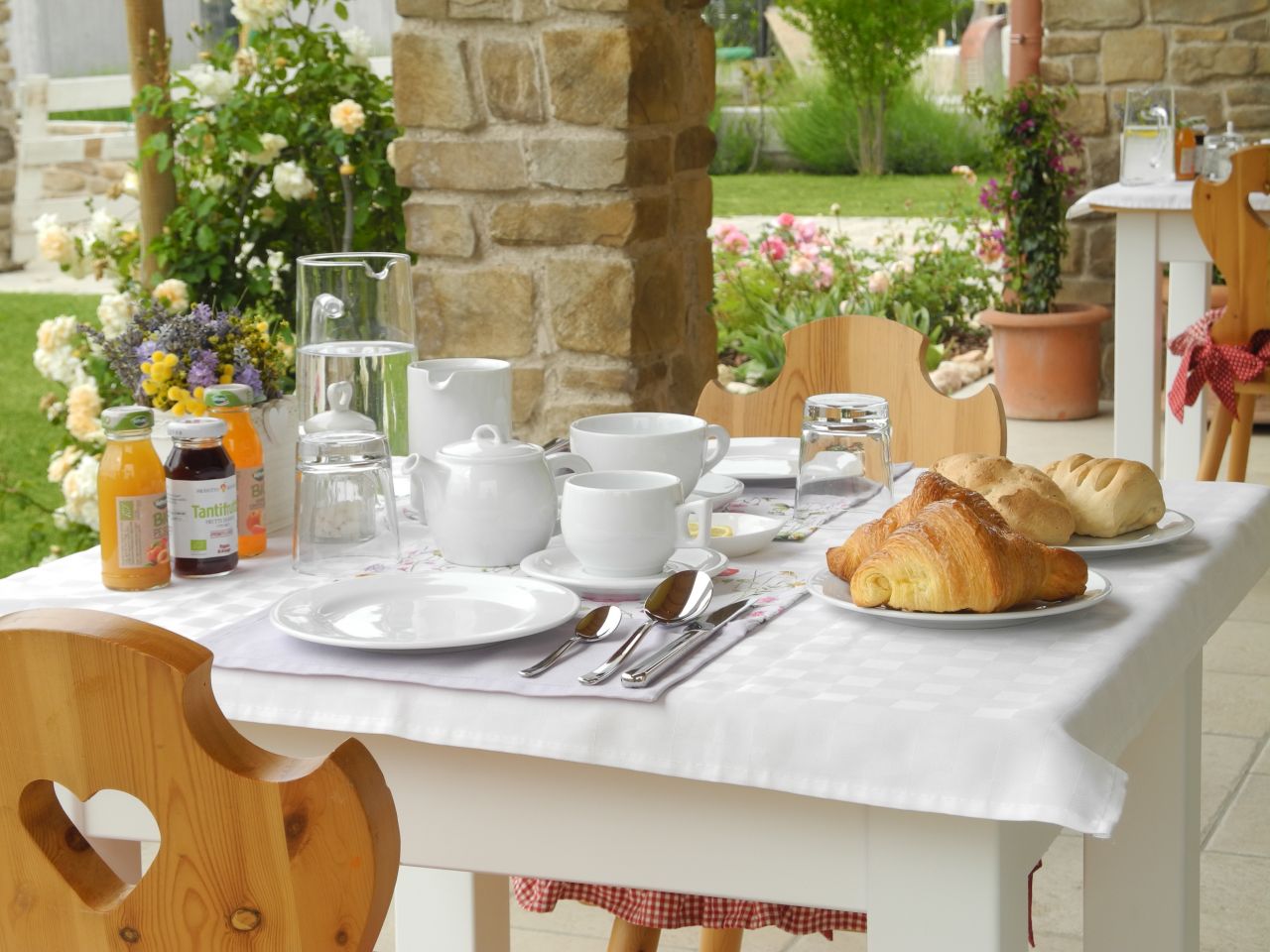 La colazione, servita nella piccola stube e nella bella stagione nel patio, offre torte fatte in casa, cornetti, biscotti, una vasta scelta di marmellate, miele e crema spalmabile al cioccolato, yogurt con composta di frutta, muesli e cereali. E per chi ama il salato sarà disponibile un piatto di salumi e formaggi.