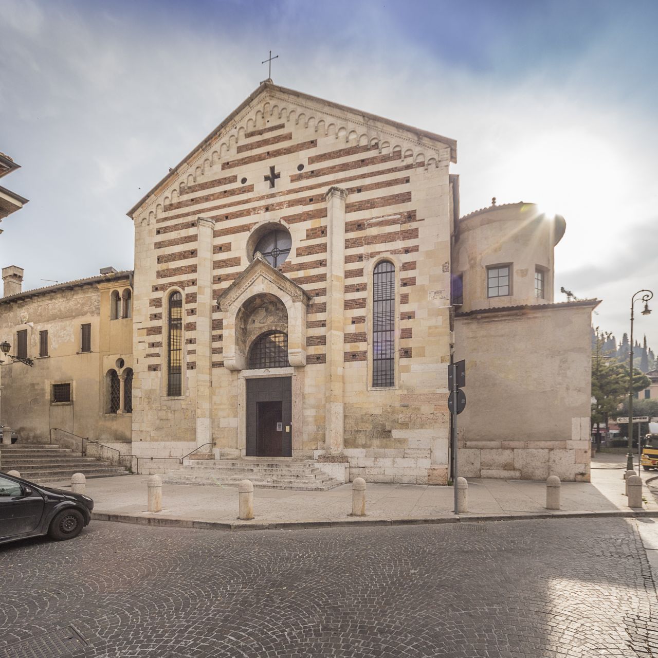 Santo Stefano, poco lontano, è una delle basiliche paleocristiane di Verona. Sorse probabilmente intorno al V secolo poco fuori le mura romane. Nella chiesa vi sono numerosi dipinti di valore, tra cui quelli di Alessandro Turchi, detto l"Orbetto, gli affreschi del Brusasorzi, di Martino da Verona e Giovan Francesco Caroto. Il caratteristico e panoramico tiburio (elemento architettonico, che racchiude al suo interno una cupola) ottagonale ospita sei campane.